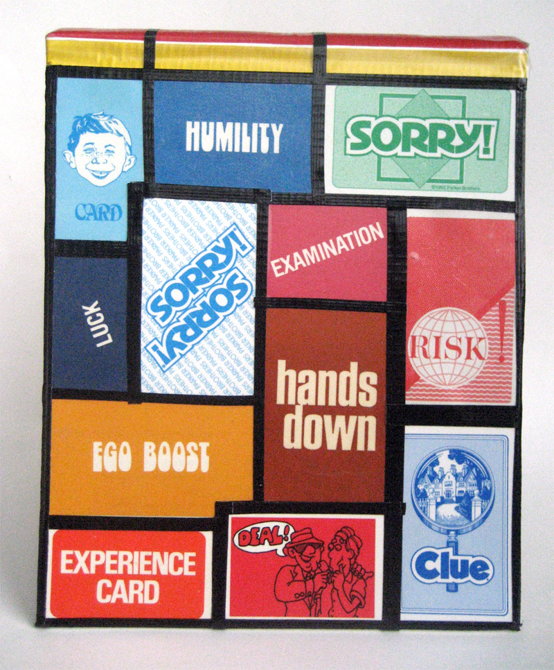I was happy with the result. But something was missing. The color blocks made me think of Mondrian designs, popular in the 60s. What if I put a black border around each card? Was it too late? Nope. Thank goodness for duct tape!